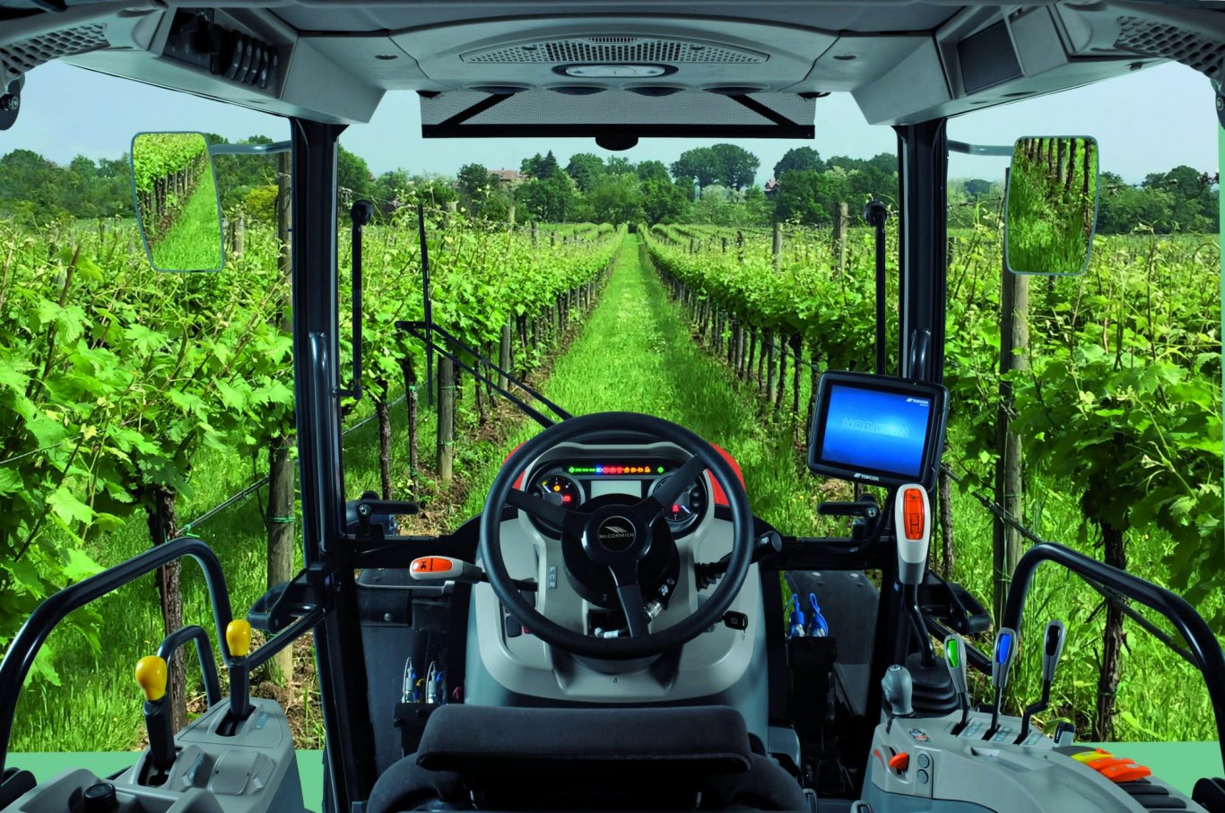 The ROPS version of the X4F and GE tractors feature an innovative design which combines beauty and functionality. The sleek, dynamic lines of the hood and the rounded profile of the fenders allow this tractor to move easily under low branches and through narrow rows. Spacious, comfortable, and safe, the driving position ensures exceptional all-round visibility, thereby maximizing productivity. |