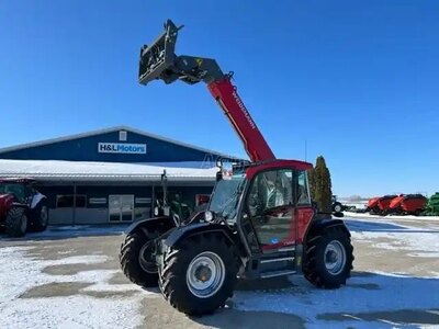 In stock! Weidemann T7042, telehandler, maximum working height of 7.8 meters. The machine has a width of 2.45 meters. Features several steering modes....